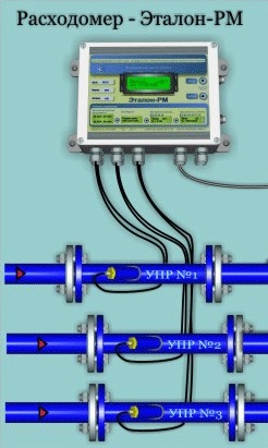 Ультразвуковые многолучевые расходомеры предназначены для измерения расхода и объема различных жидкостей с содержанием твердых и газообразных веществ не более 3% от объема, максимальной скоростью потока не более 12 м/с, числом Рейнольдса не ниже Re 4000, давлением до 1,6 МПа и температурой от 1 до 150° C, протекающей по четырем металлическим напорным трубопроводам диаметром от 15 до 1800 мм (возможно использование расходомеров на одном трубопроводе – с одним каналом измерения).