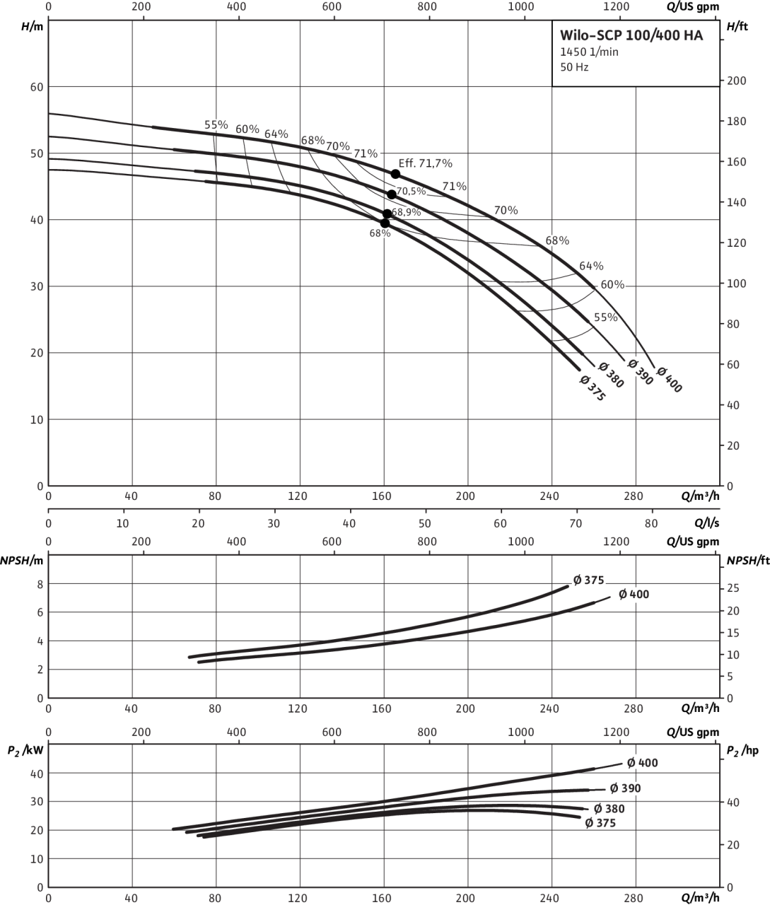 • Низкое значение допускаемого кавитационного запаса благодаря рабочему колесу двустороннего всасывания
