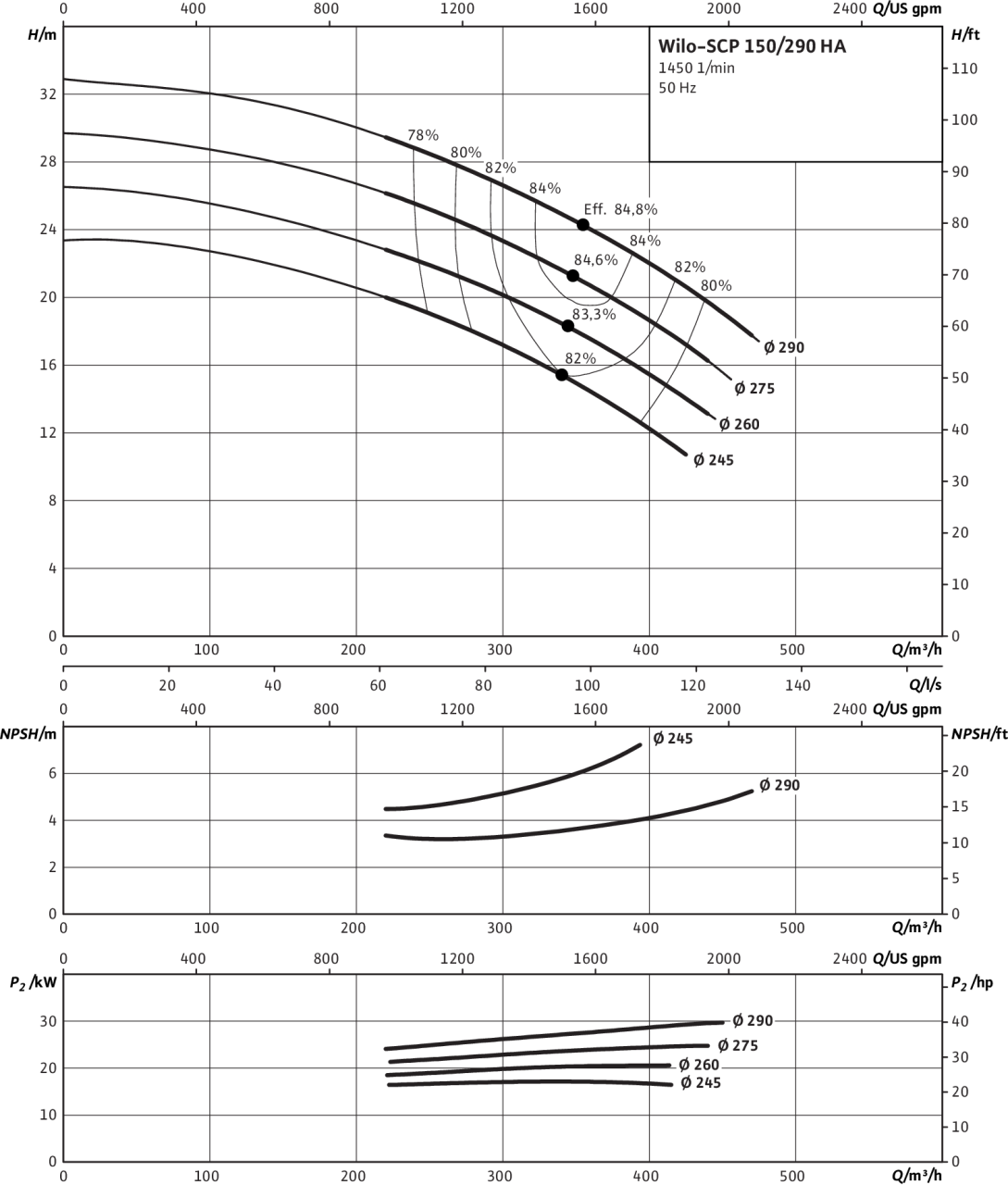 | Номинальный внутренний диаметр фланца (на стороне всасывания) | DN 200 |