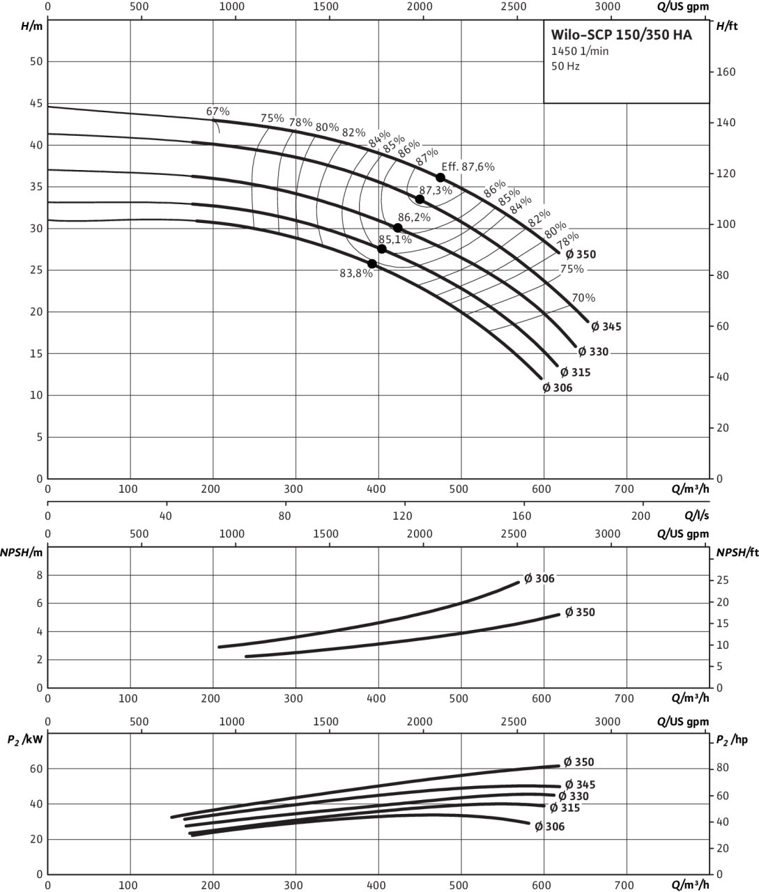 • Низкое значение допускаемого кавитационного запаса благодаря рабочему колесу двустороннего всасывания