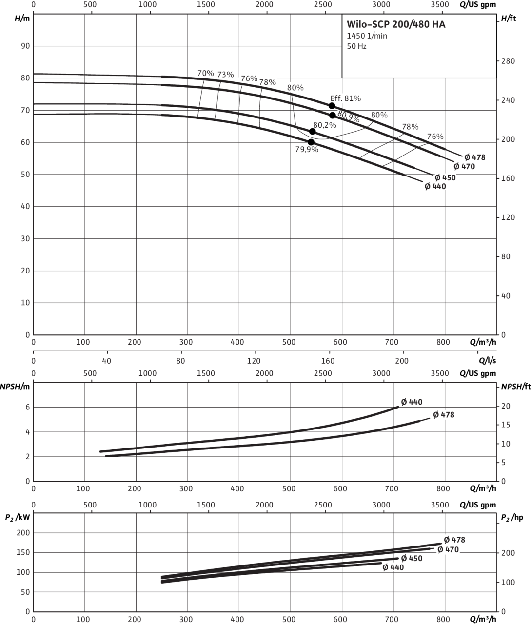| Номинальный внутренний диаметр фланца (на стороне всасывания) | DN 200 |