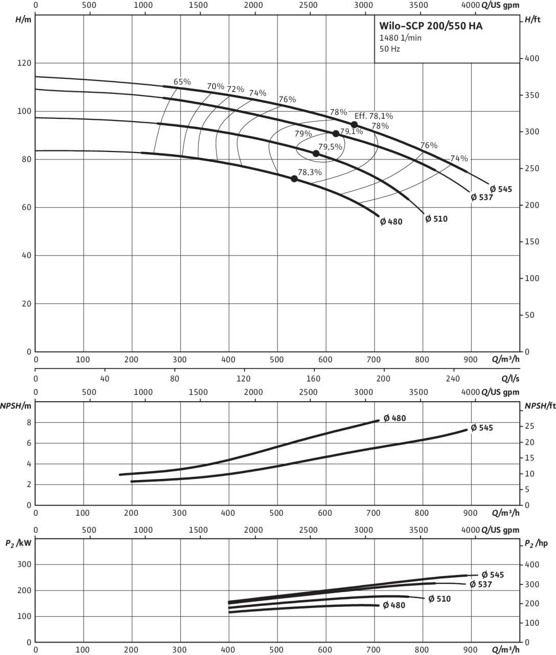 | Номинальный внутренний диаметр фланца (на стороне всасывания) | DN 200 |