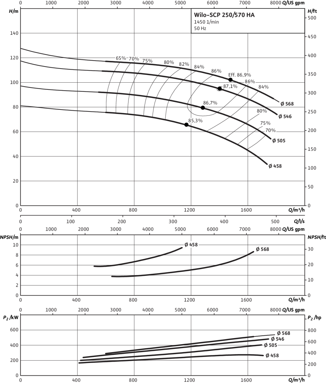 | Номинальный внутренний диаметр фланца (с напорной стороны) | DN 250 |