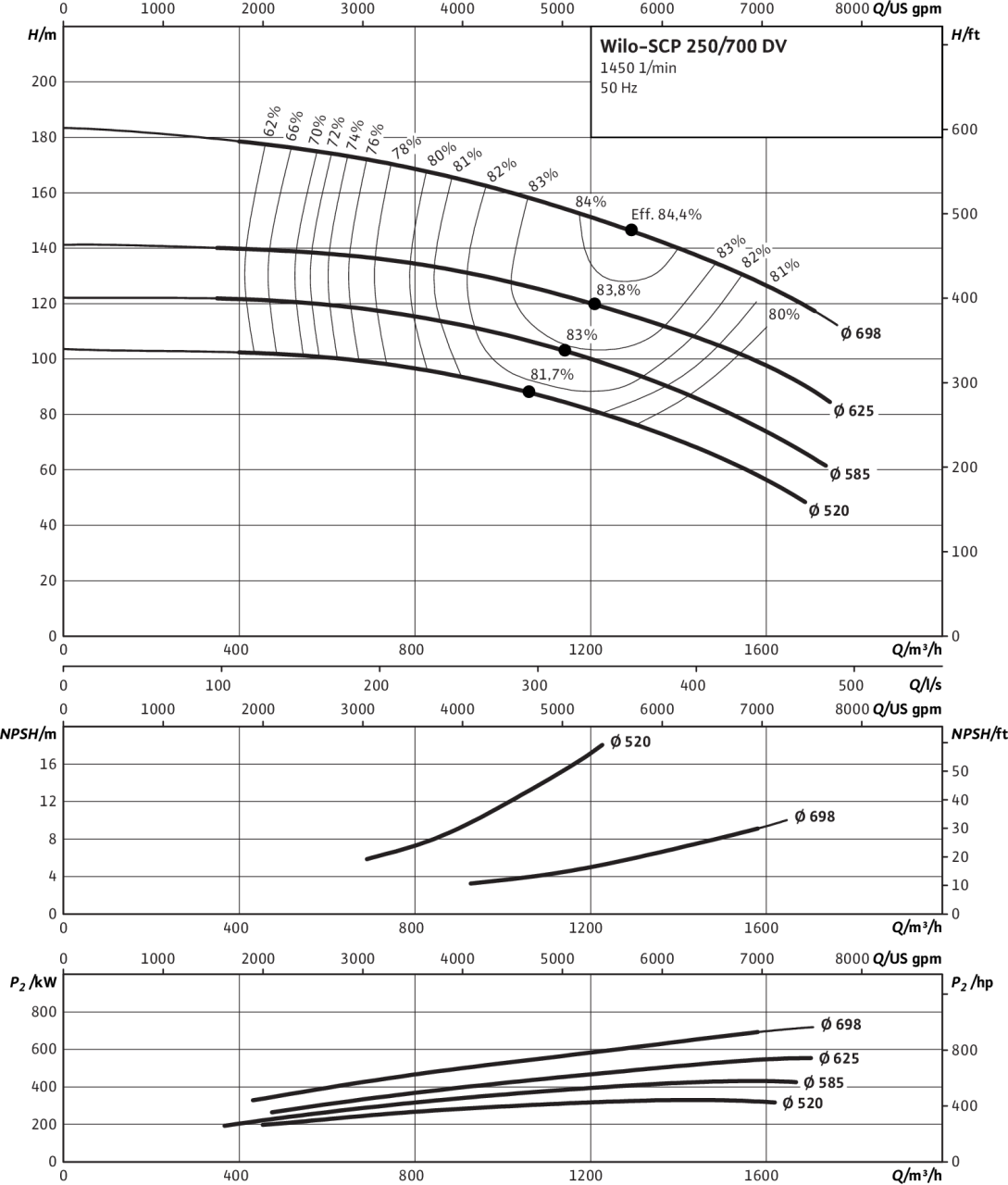 | Номинальный внутренний диаметр фланца (с напорной стороны) | DN 250 |