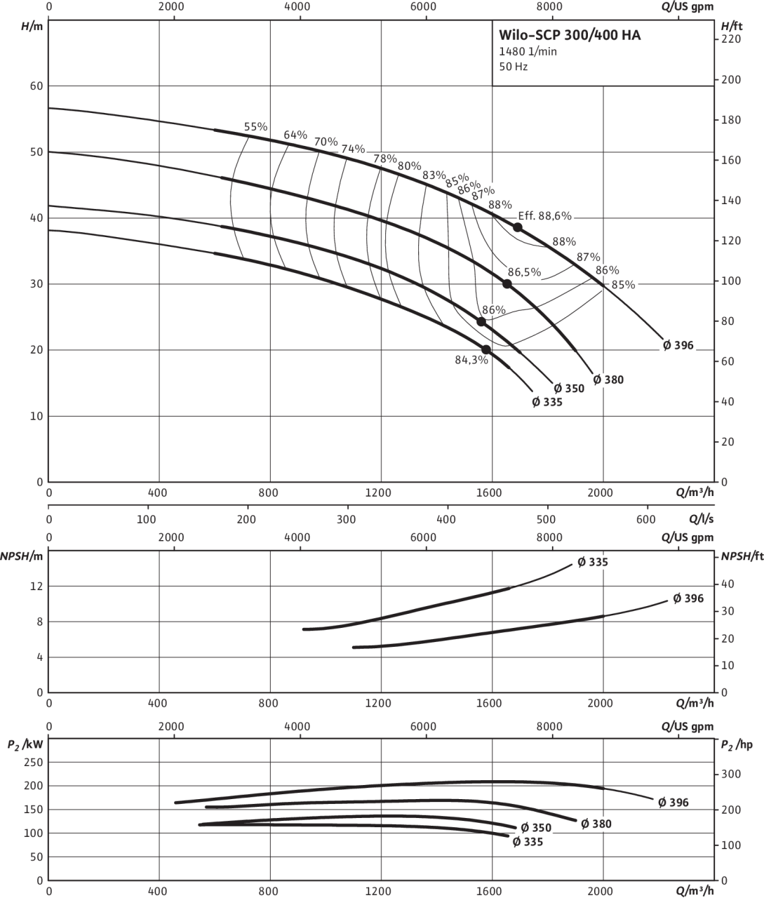 • Производительная гидравлическая часть для больших расходов до 17 000 м³/ч