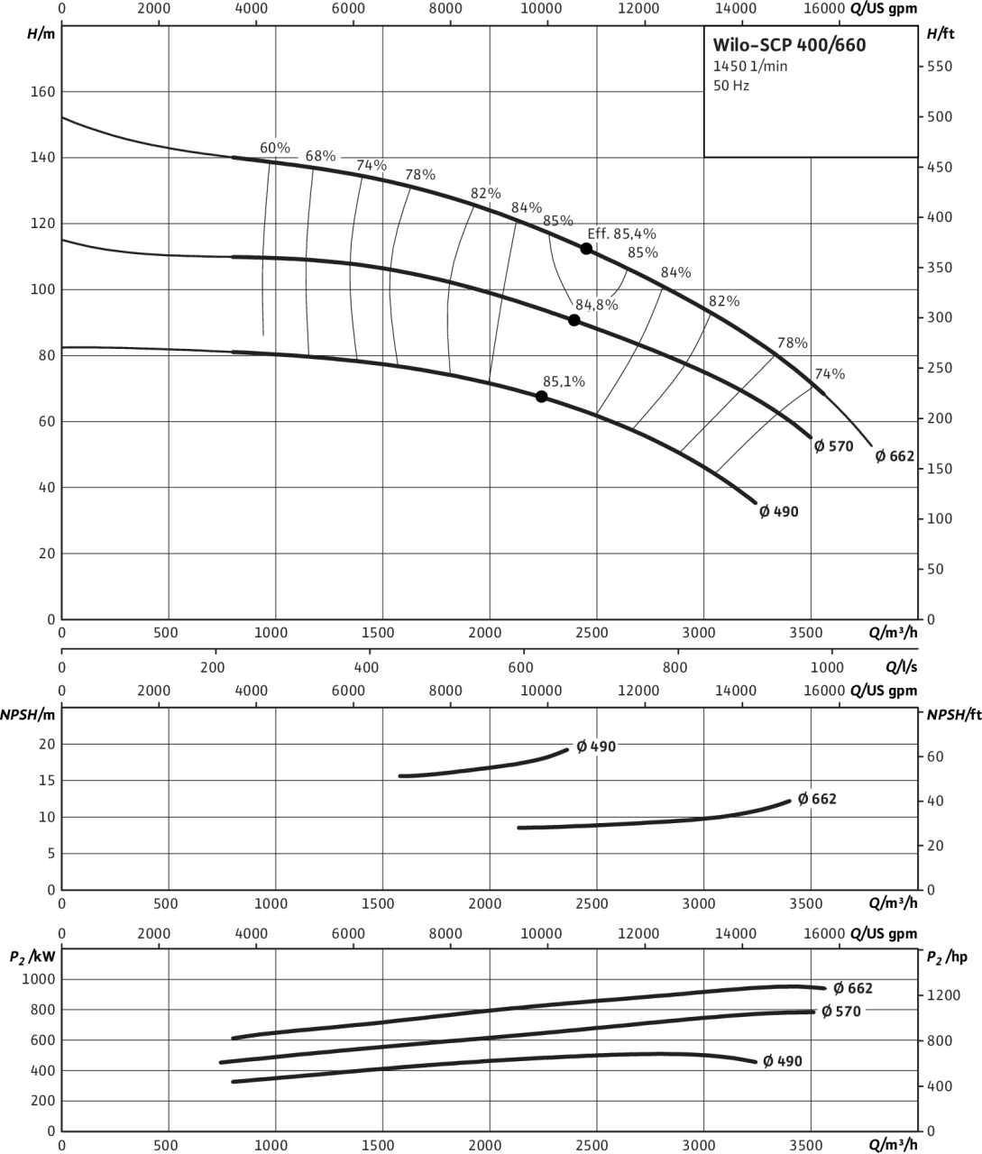 | Номинальный внутренний диаметр фланца (на стороне всасывания) | DN 500 |