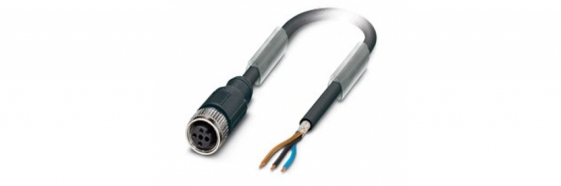 - Исполнение, гнездо с резьбой M12 и свободный конец кабеля