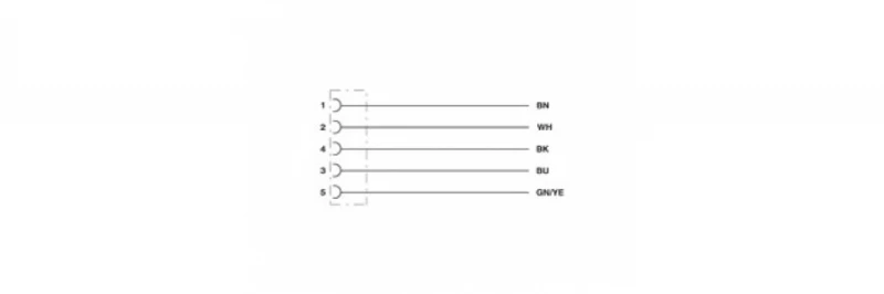 - Цветовая маркировка жил: коричневый, белый, голубой, чёрный, жёлто/зелёный