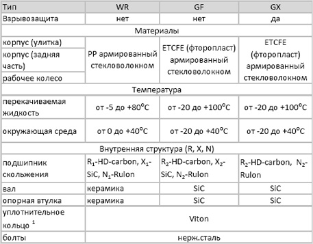 Различные материалы внутренних частей насосов с магнитной муфтой выражены в 3-х версиях по исполнению: