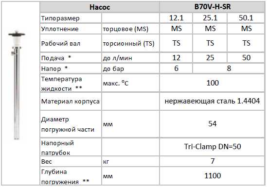 Модели винтовых бочковых насосов серии B70V-H-SR Sanitary 12.1, 25.1 и 50.1