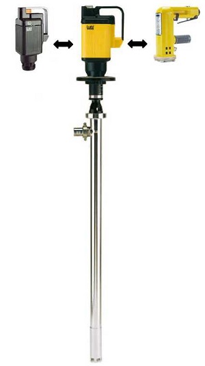 Насосы серии B70V-SR работают от стандартных однофазных электрических двигателей серий MAII и MEII для бочковых насосов, а также от пневмоприводов серий MD.