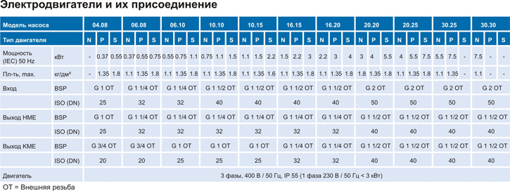 Кривые производительности насосов B80 HME (рабочие кривые) при 50A, 2900 об/мин.