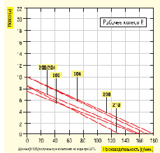 Кривые производительности насосов бочковых серии PVDF (рабочие кривые)
