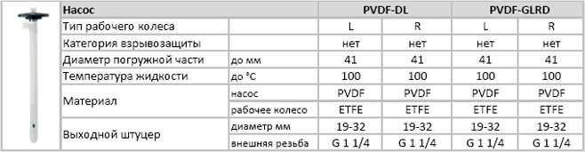 Модели бочковых насосов серии PVDF: DL- без уплотнения, GLRD — с уплотнением