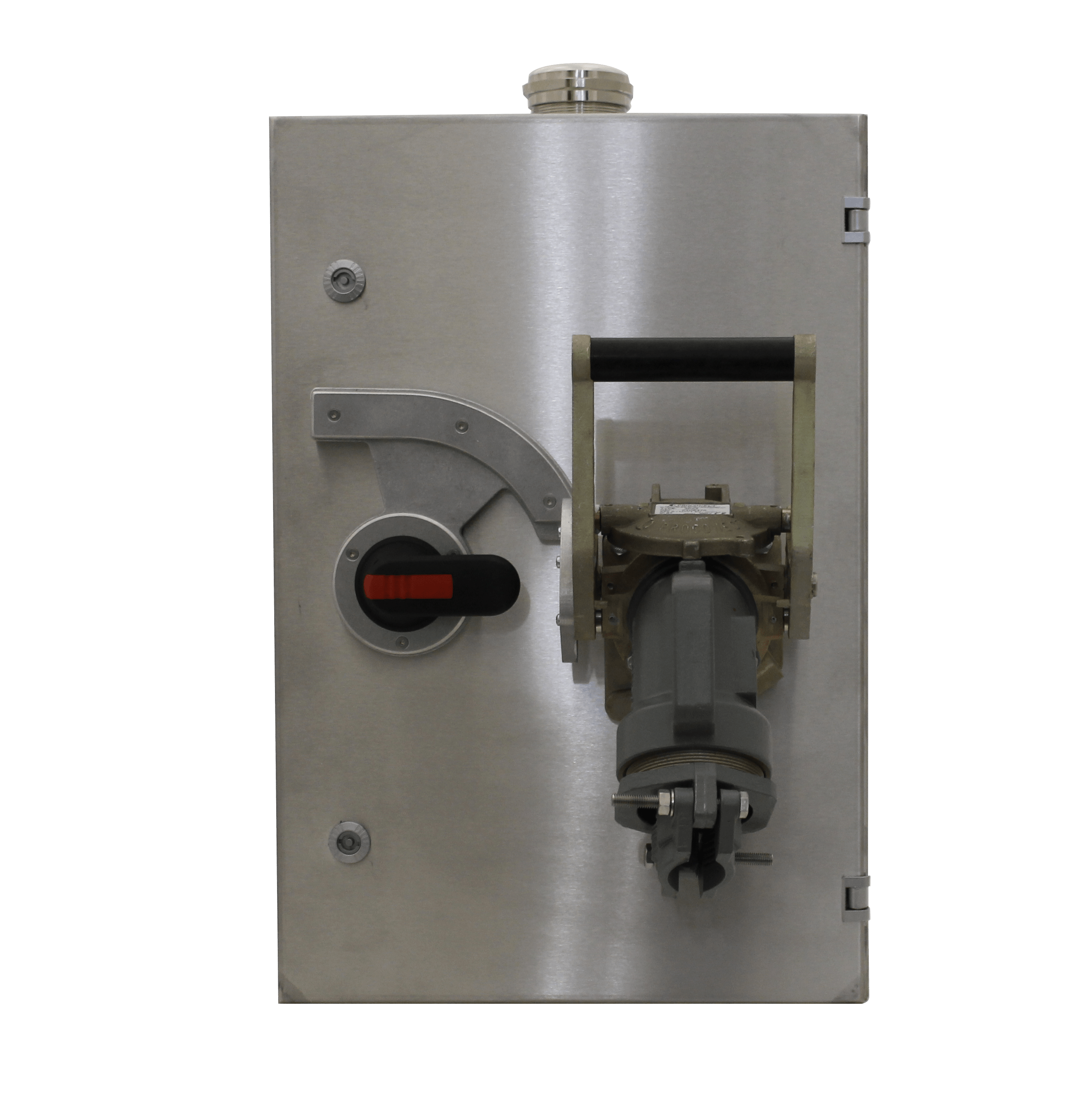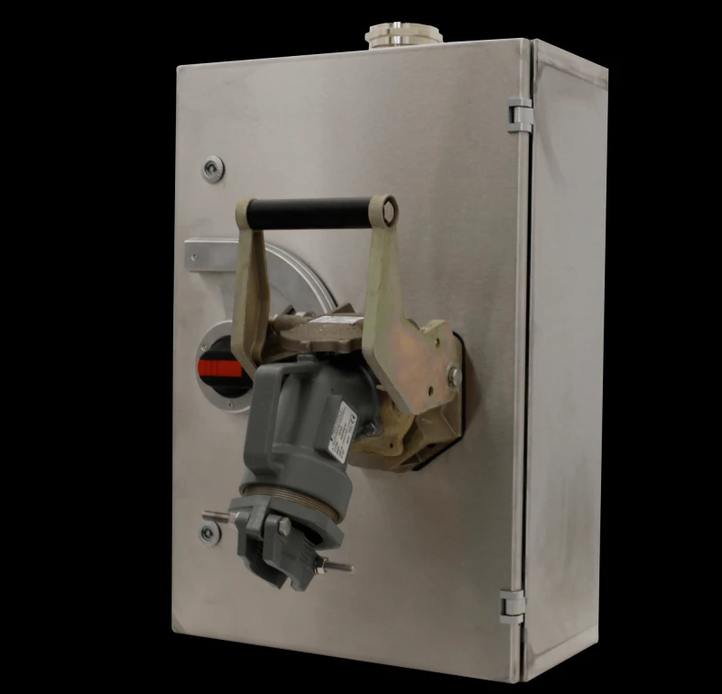 Настенный силовой шкаф с розеткой с блокировкой EC-MSI-X4DE450V. Рассчитан на ток 250 Ампер и контактную группу 3P+N+E+2p. Рекомендуется использовать при напряжении электрического тока до 3,3 кВ. Степень защиты соответствует стандарту IP66.