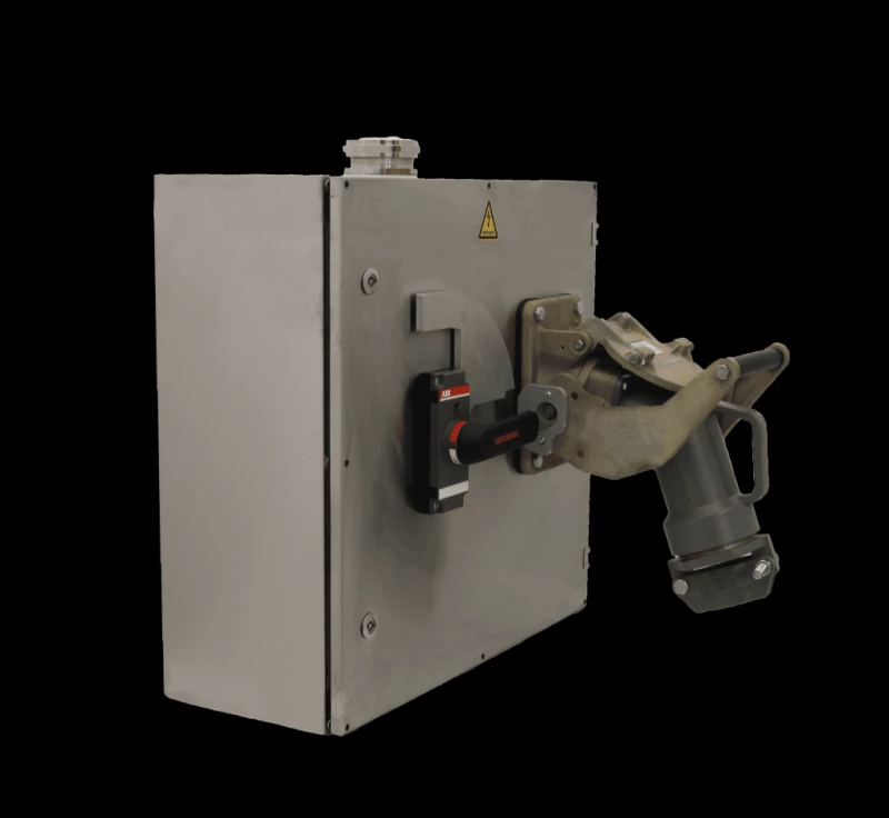 Настенный силовой шкаф с розеткой с блокировкой EC-MSI-X5DE415. Рассчитан на ток 320 Ампер и контактную группу 3P+N+E+2p. Рекомендуется использовать при напряжении электрического тока до 3,3 кВ. Степень защиты соответствует стандарту IP66.
