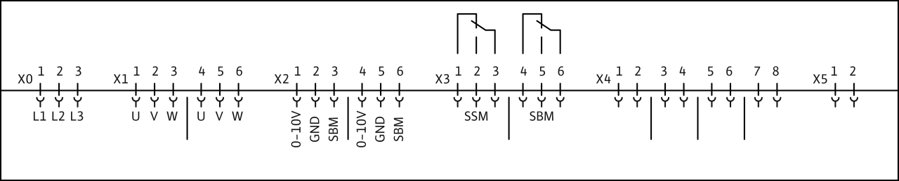 x3: беспотенциальные контакты (сигнализация); 1–3 – SSM (обобщенная сигнализация неисправности); 4–6 – SBM (обобщенная сигнализация рабочего состояния)