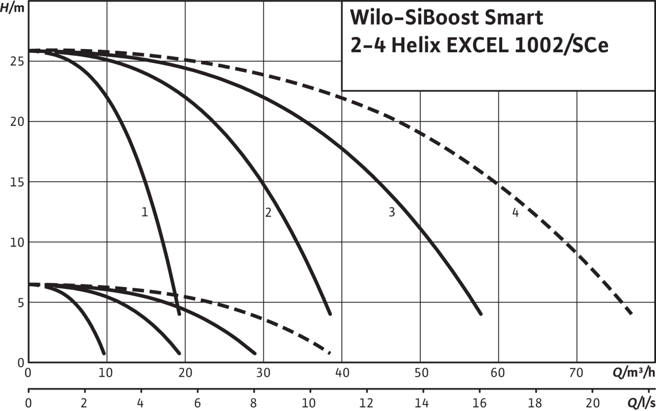 - Автоматическое, зависимое от нагрузки подключение от 1 до n насос(ов) пиковой нагрузки в зависимости от регулируемых величин давления: постоянное, p-c