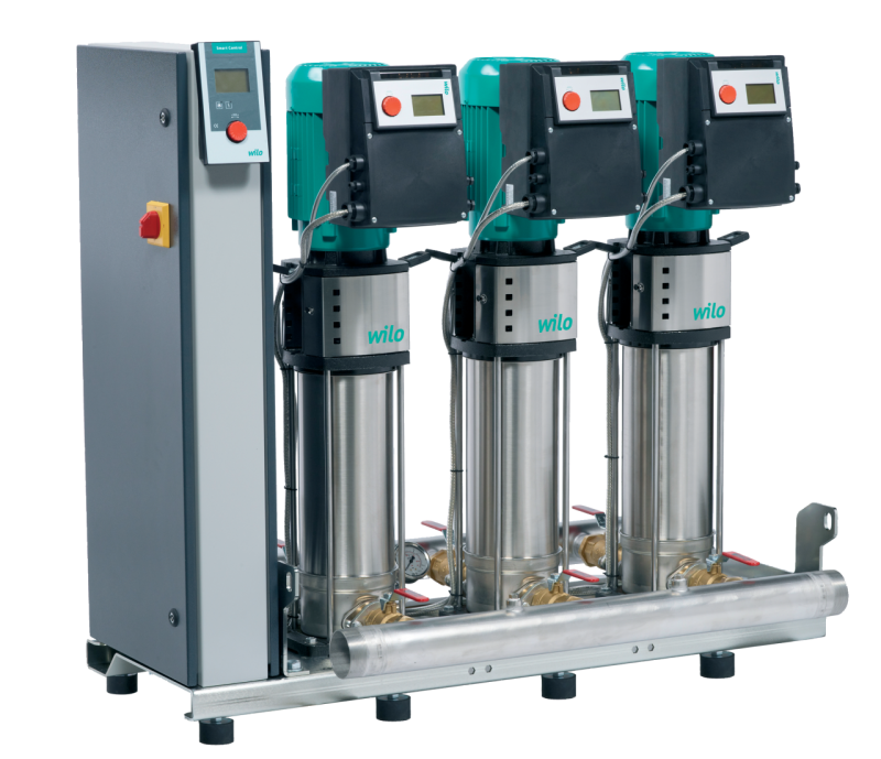 Компактная установка повышения давления согласно стандарту DIN 1988 и DIN EN 806, для прямого или опосредованного подсоединения. Состоит из нормальновсасывающих параллельно подключенных вертикальных высоконапорных центробежных насосов из нержавеющей стали с сухим ротором, при этом каждый насос оснащен собственным частотным преобразователем. Готовность к подключению, установка на опорной раме с системой трубопроводов из нержавеющей стали, включая прибор управления со всеми необходимыми измерительными и регулировочными устройствами.