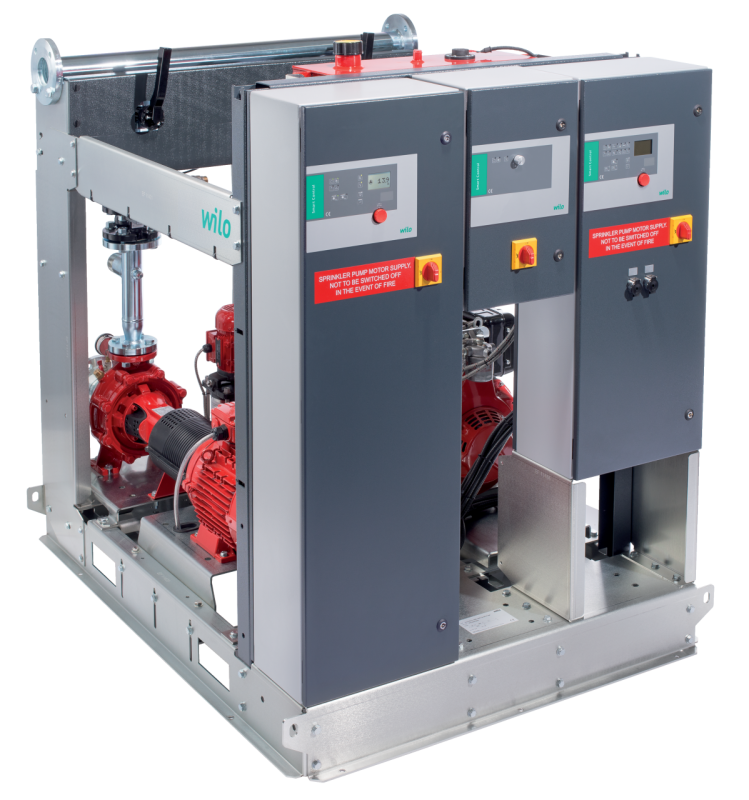 Управление подпитывающими насосами с электродвигателем и датчиками осуществляется с помощью прибора управления Wilo-Control SC Fire J в соответствии с EN 12845, как во время испытаний, так и во время работы спринклерной системы пожаротушения.