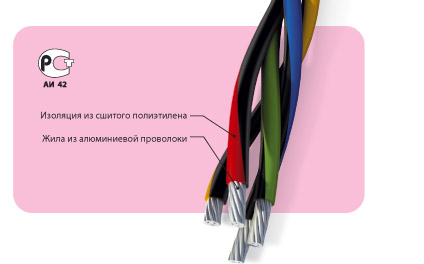 Провод самонесущий с алюминиевыми жилами, с изоляцией из светостабилизированного сшитого полиэтилена (ПЭ), с нулевой несущей неизолированной сталеалюминиевой жилой |