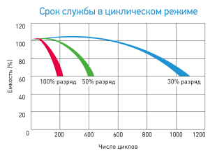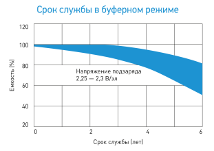 сроком службы в буферном режиме 10 лет (от 7 до 18 Ач – 5 лет).