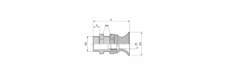 | Артикул | Наименование | Диапазон зажима ØF мм | SW, мм | C, мм | D, мм |