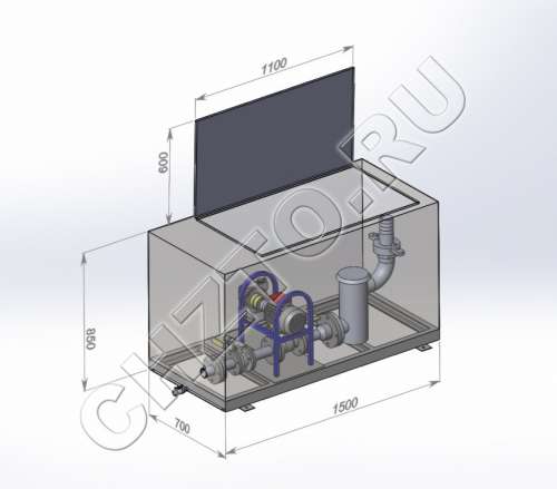 Приемный колодец изготавливается в стандартном варианте или по техническим требованиям заказчика. Колодец может быть выполнен из стали 20, нержавеющей стали или 09Г2С, окрашен грунт эмалью, Часть предназначенная для заглубления в грунт окрашивается антикоррозионным покрытием.