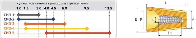 - Пружина конической формы обеспечивает надежный захват и удержание скрутки проводов на протяжении всего срока эксплуатации