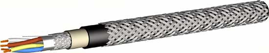 | Пары с многопроволочными медными лужеными жилами сечением от 0,5 до 2,5 мм² с изоляцией из полимерной композиции пониженной пожарной опасности, в экране из алюмолавсановой ленты с контактным проводником и в оплётке из медных лужёных проволок плотностью 40%.Оболочка из ПВХ пластиката пониженной пожароопасности (СКАБ 250КГнг (А)-LS) или полимерной композиции, не содержащей галогенов (СКАБ 250КГнг (А)-HF-ХЛ). Броня в виде оплетки из стальных оцинкованных проволок. |