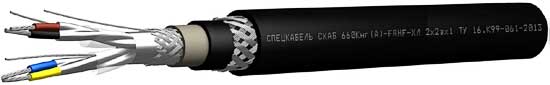 | Пары с многопроволочными медными лужеными жилами сечением от 0,5 до 2,5 мм² с изоляцией из огнестойкой кремнийорганической резины, в индивидуальном экране из алюмолавсановой ленты с контактным проводником из медной лужёной проволоки; общий экран из алюмолавсановой ленты с контактным проводником из медной лужёной проволоки и в оплётке из медных лужёных проволок плотностью 40%. Оболочка из ПВХ пластиката пониженной пожароопасности (СКАБ 660Кнг (А)-FRLS), полимерной композиции, не содержащей галогенов (СКАБ 660Кнг (А)-FRHF-ХЛ) или безгалогенного термопластичного полиуретана (СКАБ 660КУнг©-FRHF-ХЛ). Броня в виде оплетки из стальных оцинкованных проволок. Защитный шланг из ПВХ пластиката пониженной пожароопасности (СКАБ 660Кнг (А)-FRLS), полимерной композиции, не содержащей галогенов (СКАБ 660Кнг (А)-FRHF-ХЛ) или безгалогенного термопластичного полиуретана (СКАБ 660КУнг©-FRHF-ХЛ). |