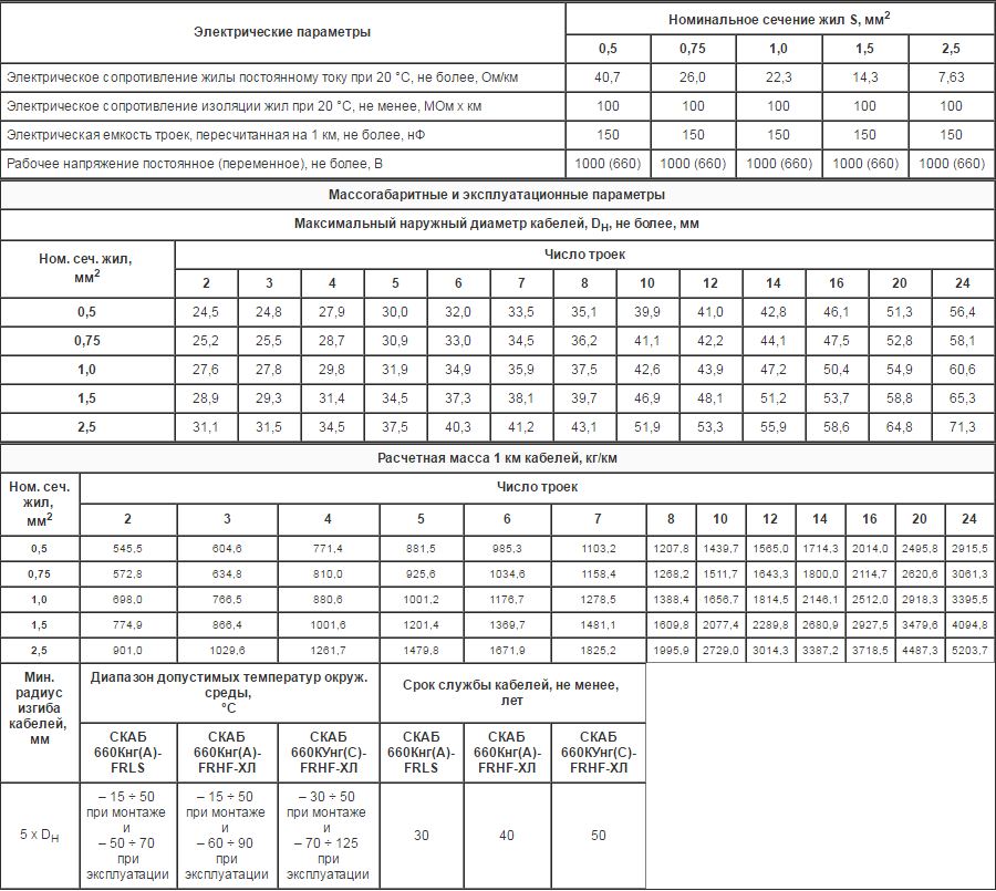 Характеристики — Спецкабель® СКАБ 660Кнг(A)-FRLS Nx3эхS , Спецкабель® СКАБ 660Кнг(A)-FRHF-ХЛ Nx3эхS , Спецкабель® СКАБ 660КУнг(C)-FRHF-ХЛ Nx3эхS
