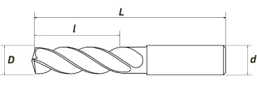 D - диаметр хвостовика, l - рабочая длина, L - общая длина