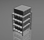 Многоярусные стеллажи разработанные для установки батарей герметизированного типа в вертикальном и горизонтальном положении. Стеллажи удобны в монтаже и демонтаже, так как основными компонентами этих стеллажей являются боковые многоуровневые опорные элементы и профильные балки.