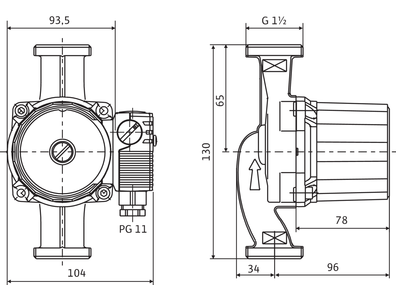 Циркуляционный насос с мокрым ротором для установки в трубах с ручной трехступенчатой регулировкой частоты вращения.