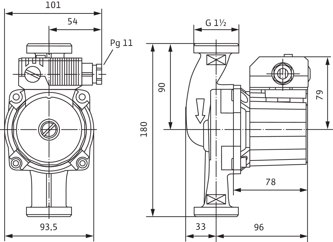 Циркуляционный насос для систем ГВС, насос с мокрым ротором и ручным трехступенчатым переключением частоты вращения для установки в трубах.