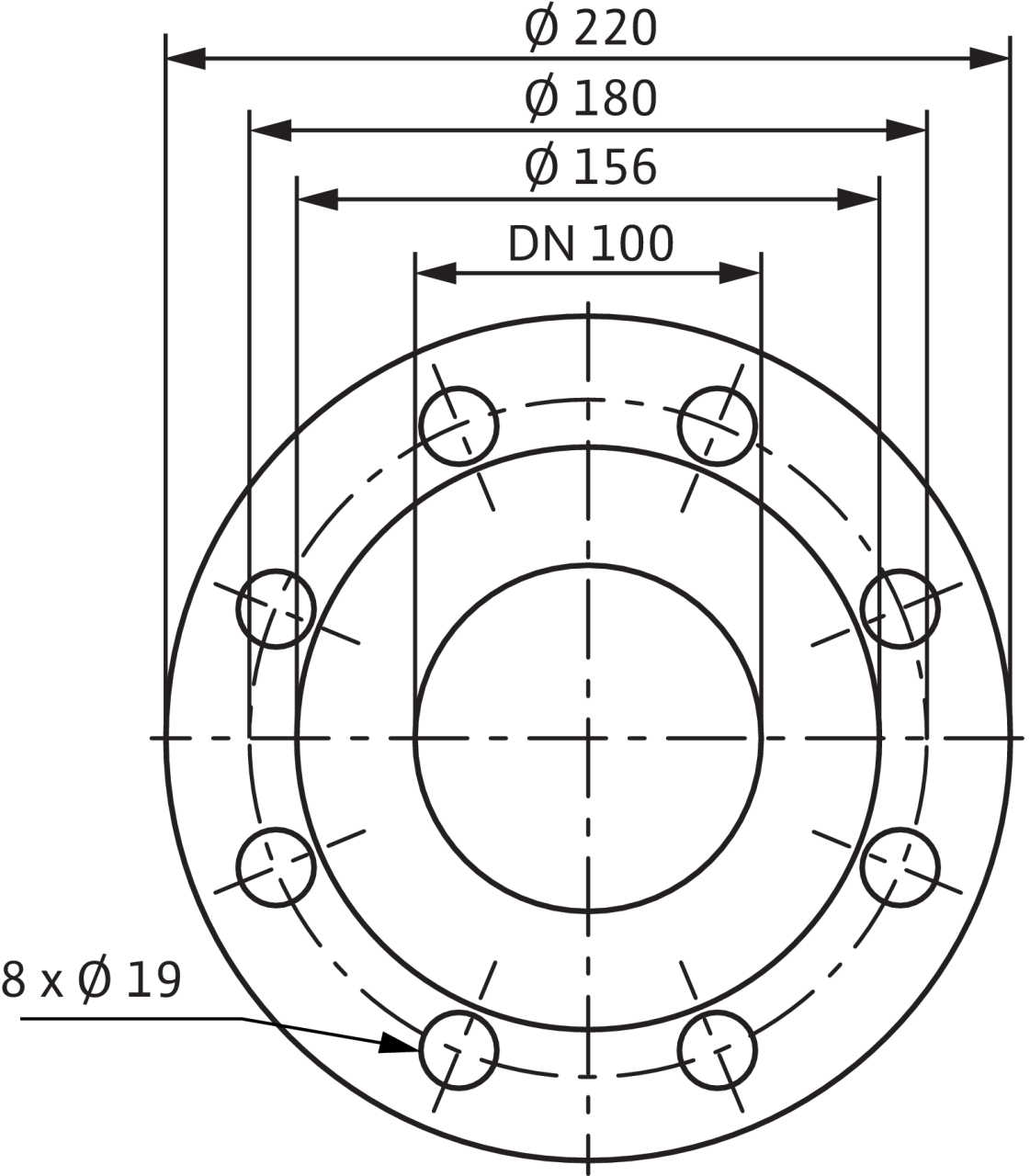 | Номинальный внутренний диаметр фланца | DN 100 |