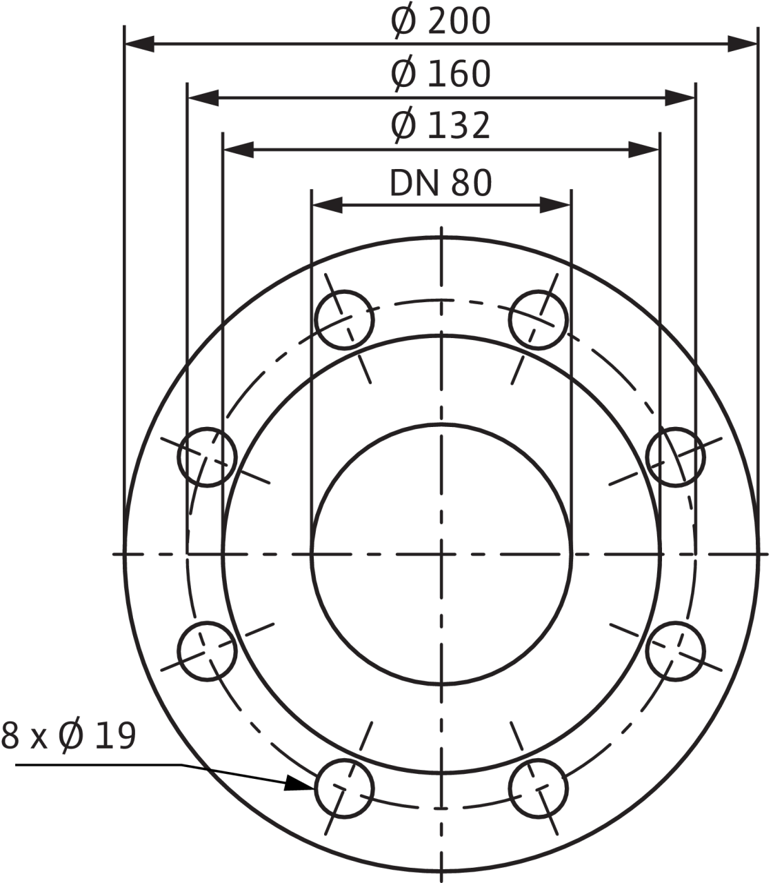 • Стандартное исполнение для насосов DN 80/DN 100: фланец PN 6 (рассчитан PN 16 согласно EN 1092-2) для контрфланца PN 6