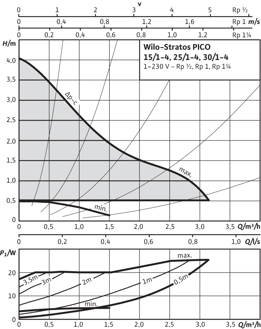 Потребляемая мощность 1~230 В P13 - 25 Вт
