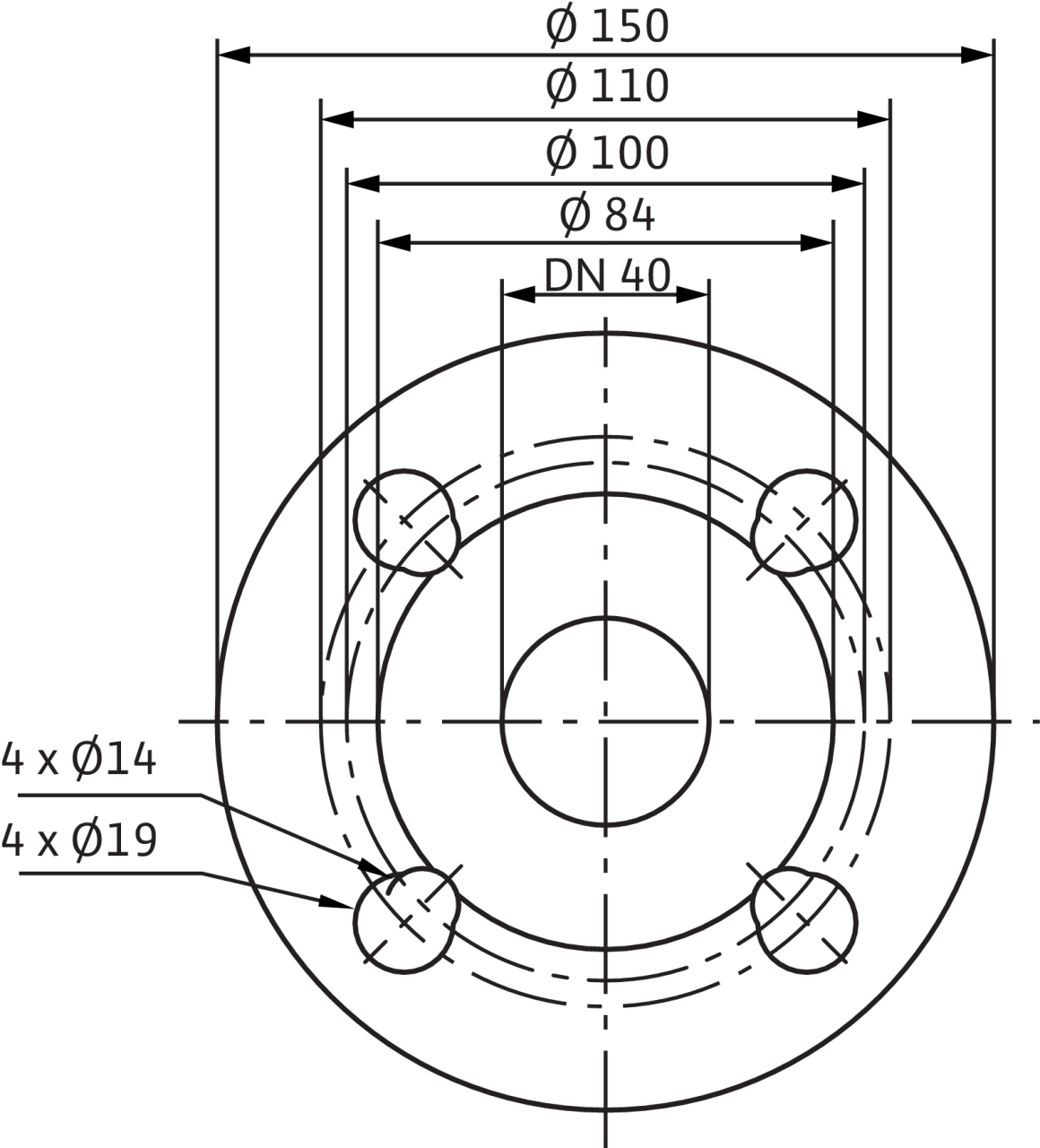• Специальное исполнение для насосов DN 40 - DN 65: фланец PN 16 (согласно EN 1092-2) для контрфланца PN 16,