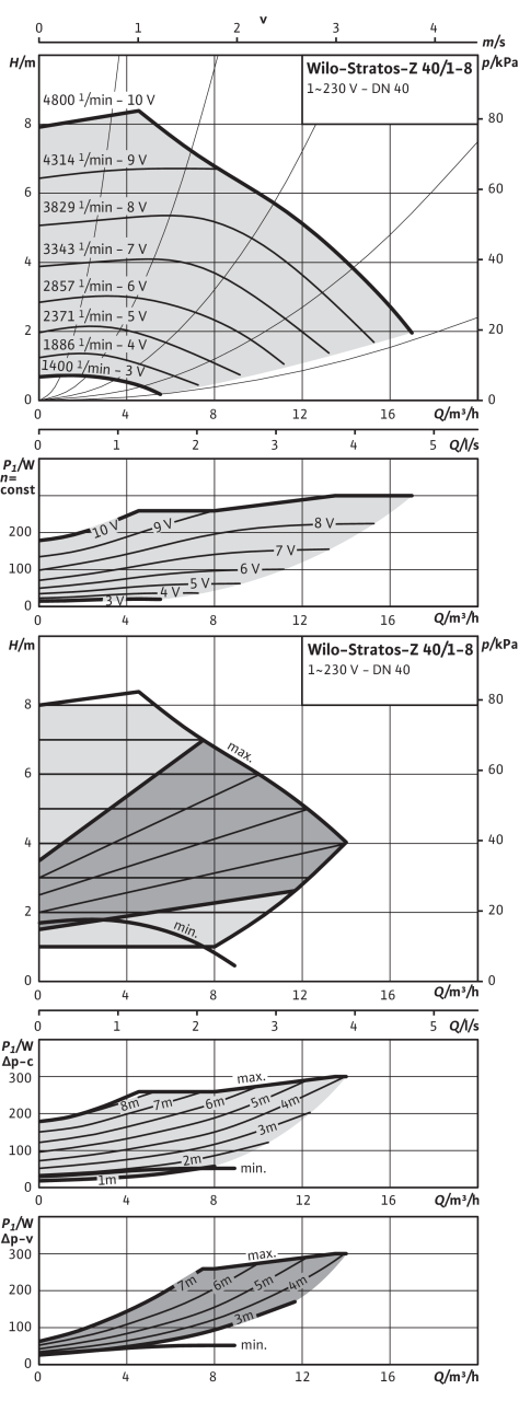 Минимальное давление на входе при температурах жидкости 50/95/110В°C3 / 10 / 16 м