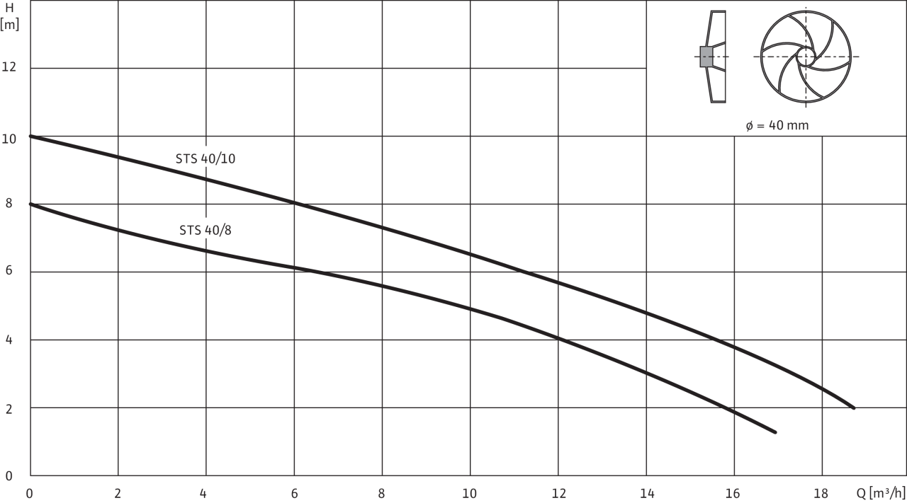 Характеристики Wilo-Drain STS 40 - 50 Гц - 2900 об/мин