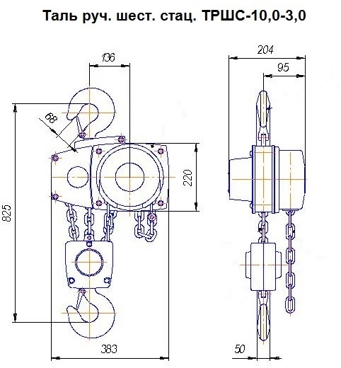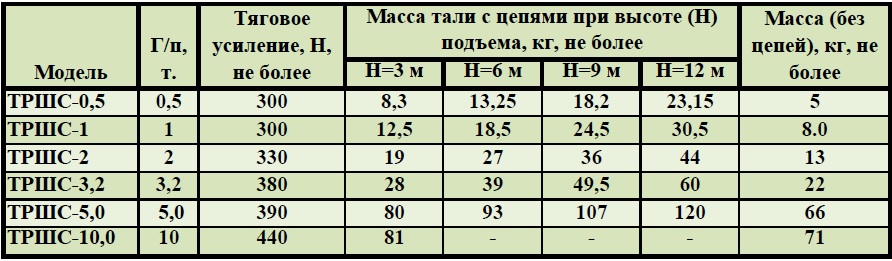 Таль ручная шестеренная стационарная ТРШС предназначена для подъема, удержания в поднятом положении и опускания груза массой, не превышающей грузоподъемность тали. При комплектовании тали механизмом передвижения данная таль может применяться также и для перемещения груза по монорельсовому пути двутаврового профиля. Таль может эксплуатироваться как в закрытом помещении, так и на открытом воздухе при температуре от –20С° до +40С°. Запрещается применение талей для подъема людей, взрывоопасных или ядовитых веществ, жидкого или раскаленного металла и шлака; эксплуатация в химически активных средах.