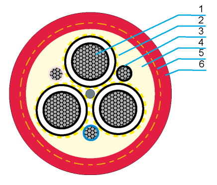 Жила заземления (2) | Спиральные жилы из лужёной мягкой меди в соответствии с IEC 60228, класс 5.