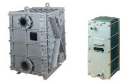 Компактные агрегаты из одного блока в форме квадратного сечения. Возможность теплообмена между двумя коррозионными текучими средами. Конструкция позволяет оптимизировать теплообмен за счет увеличения числа циклов «Производство» и «Эксплуатация». Аппарат приспособлен к небольшим объёмам протекающей среды.