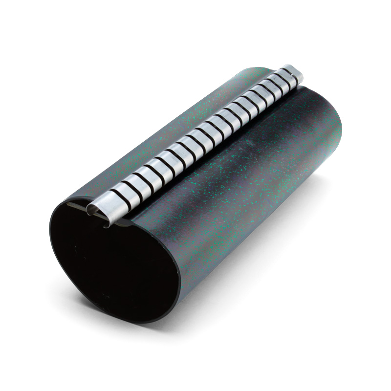 Ремонтные кожухи ТРМ и ТРМ-А представляют собой двухслойные пластины с рельсовым профилем по краям, позволяющим соединить их при помощи надвижного металлического замка в форму трубы.