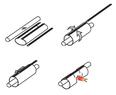 Для обеспечения полной герметичности в ответвительных муфтах дополнительно с кожухами ТРМ и ТРМ-А используются клипсы КТ необходимого размера. Скоба фиксирует положение стенок кожуха, а толстый слой термоплавкого клея при нагревании полностью заполняет пустоты между клипсой, стенками манжет, магистральным и ответвляемым кабелем.