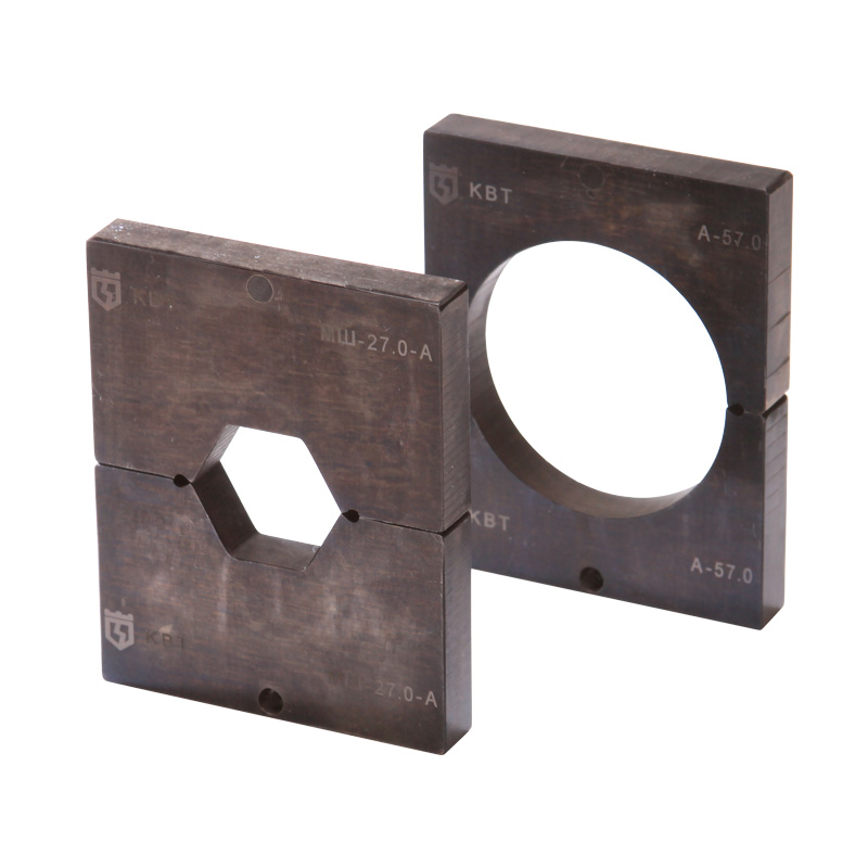 Матрицы предназначены для опрессовки натяжной, соединительной и контактной арматуры типа САС, САСУС, НАС, РАС, ЗПС, СВС, ТРАС для алюминиевых и сталеалюминиевых проводов высоковольтных линий электропередач с прессом гидравлическим ручным ПРГ-14 (КВТ)