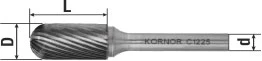 Рабочая часть борфрез KORNOR выполнена из высококачественного твердосплава карбид-вольфрама, что обеспечивает хорошую износостойкость и высокое качество обрабатываемых деталей.