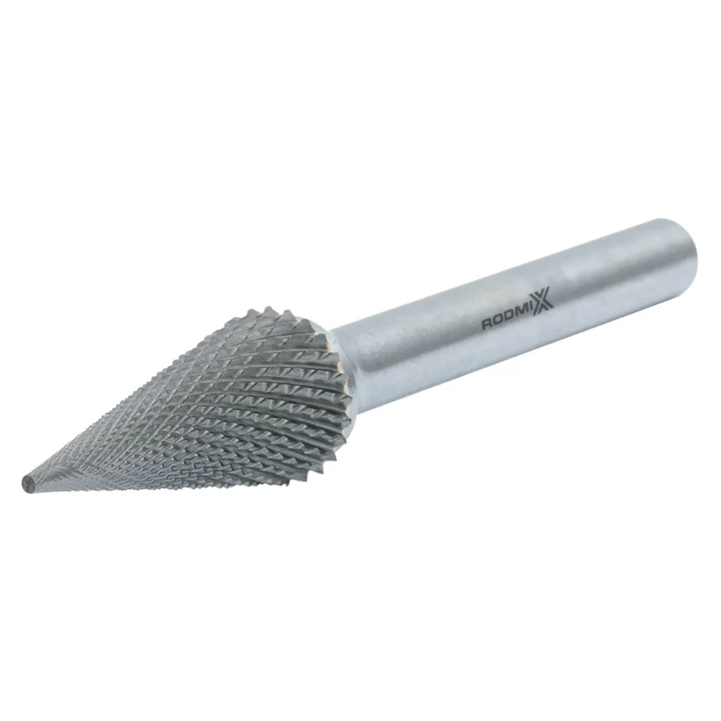 Рабочая часть борфрез Rodmix выполнена из высококачественного твердосплава, аналога ВК8 (твердый карбид вольфрамовый сплав), и соединяется с хвостовиком прогрессивным способом, что в совокупности обеспечивает высокий ресурс, износостойкость и качество обрабатываемой детали (зачистку кромок и швов сварки, скругление краёв, удаление заусенец, обработка пазов, подгонка деталей и многое другое).